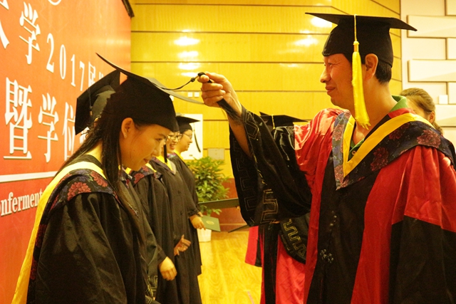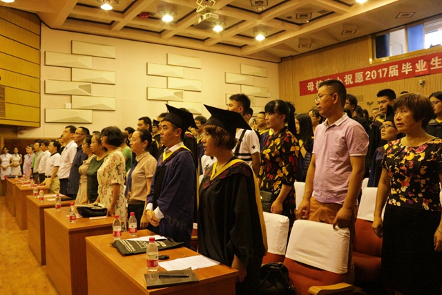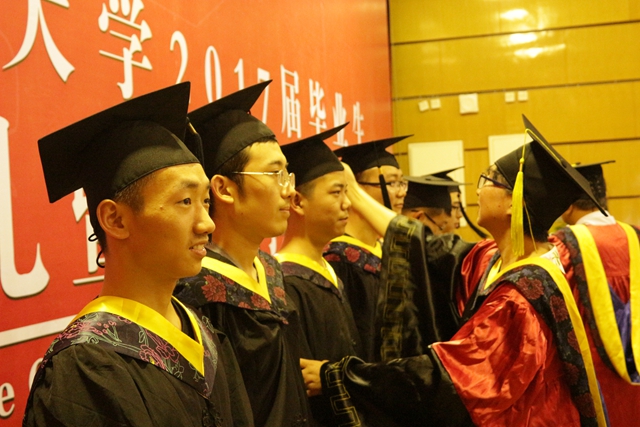 3044永利集团2017届本科生毕业典礼暨学位授予仪式于7月6日14:30在公司金花校区图书馆报告厅隆重举行。经理刘涵、公司党委书记高勇、公司党委副书记、副经理白华煜,各系主任及部分2017届本科生导师、毕业生家长代表、毕业班辅导员参加了此次典礼。毕业典礼由公司党委副书记、副经理白华煜主持。