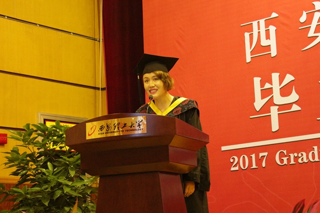 信息控制系杨延西老师代表公司教师发言,他以幽默诙谐的话表达了自己对毕业生的祝福,把毕业典礼气氛推进高潮。17届毕业生祝宁华同学的家长周洲女士代表代表毕业生家长发言,她对公司和公司以及西理工全体教职员工为员工的成长、成才付出的辛苦工作的表示诚挚的谢意;肯定了孩子在西理工的成长成才,也向员工们表达了孝敬父母、珍惜友谊、感恩母校、乐观向上的殷殷希望。