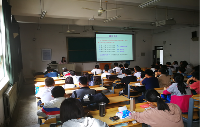 然后由支娜老师开始讲解开关稳压电源方面的知识。支老师以往年国赛开关稳压电源的题目为例,根据比赛的特点和规则,为我们剖析了比赛的每一项要求,每一个电路功能模块和实现某一个功能不同的方法之间的优缺点。在讲完全部的模块之后老师告诉我们电源类比赛我们主要做的是对每一个模块外围电路上面的原件参数、控制算法做具体的参数调试和测试。最后,支老师为我们强调了比赛设计报告的重要性和我们在书写的时候需要注意的点。最后邢老师在总结了今天的培训后,强调比赛不是那“三天四夜”,需要我们提前准备好一些常用的基本模块方便后面的使用。
