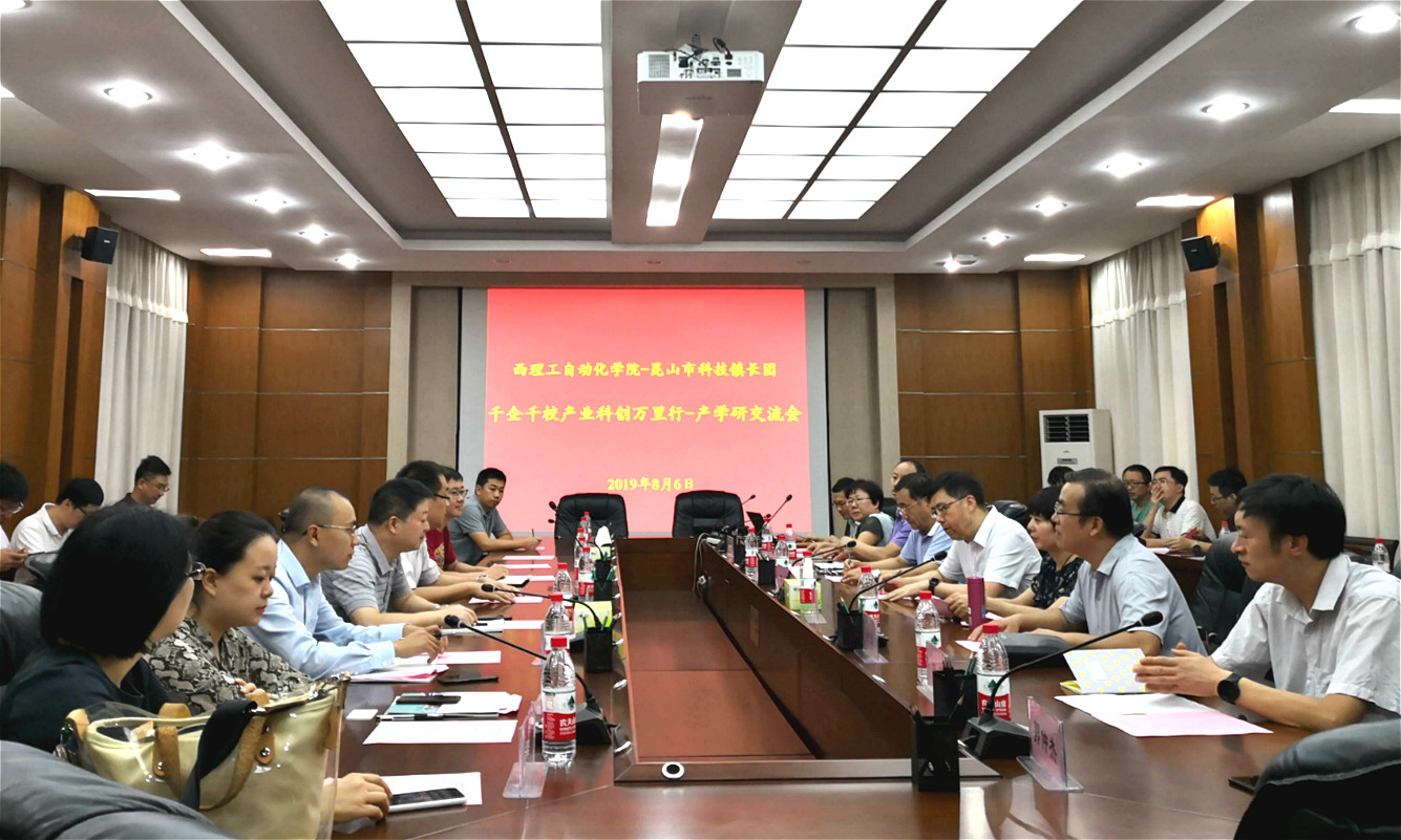 8月6日上午,公司与昆山市科技镇长团一行20人在教四楼101会议室召开产学研合作交流会。昆山市副市长肖立中、公共信用信息中心副主任汪宏韬、花桥经济发展局副局长刘雁桥、高新区科技局副局长吴凤兵,3044永利集团经理刘涵、副经理封先锋、电气系主任伍文俊、电气系支部书记宋卫章以及相关老师参加了交流会。交流会由封先锋主持。