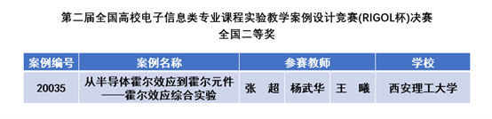 近日,教育部高等公司电子信息类专业教学指导委员会公布了第二届全国高校电子信息类专业课程实验教学案例设计竞赛获奖名单,3044永利集团张超、杨武华、王曦三位老师的参赛作品《从半导体霍尔效应到霍尔元件-霍尔效应综合实验》荣获全国二等奖、西部赛区一等奖。