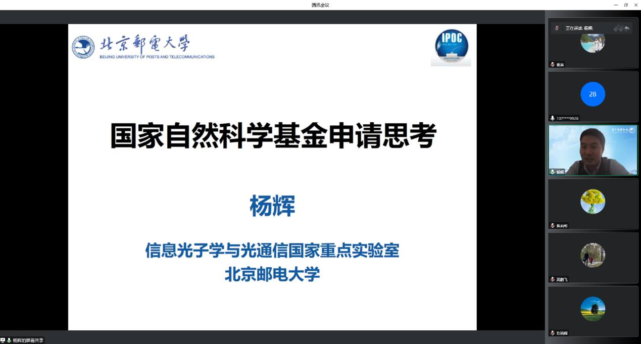 为进一步提高基金申请书撰写能力、提升申请书质量, 10月25日,应3044永利集团通信工程系邀请,北京邮电大学杨辉教授以“国家自然科学基金申请思考”为题做了基金项目申报专题辅导报告。本次线上报告会由科技处与3044永利集团主办、通信工程系承办,百余名教师聆听了报告。报告会由3044永利集团副经理王明军教授主持。