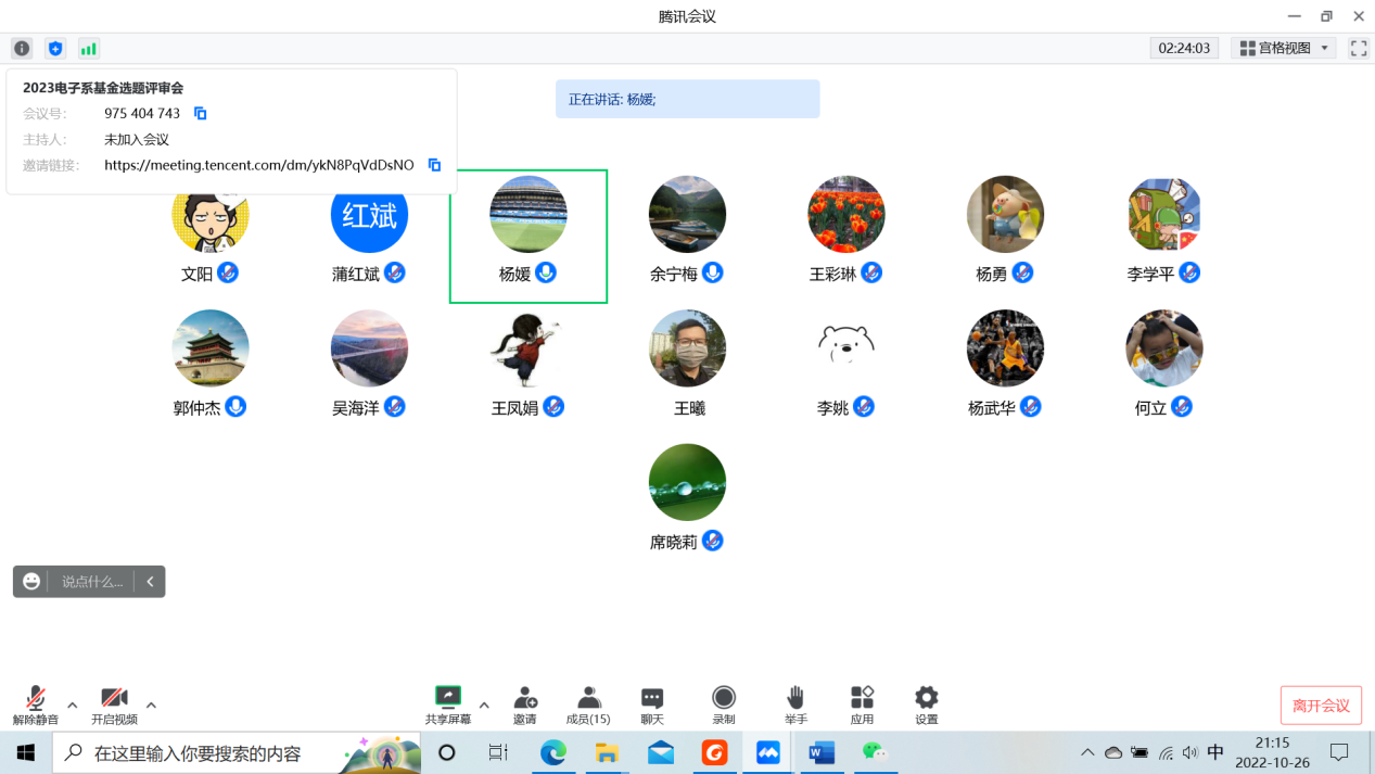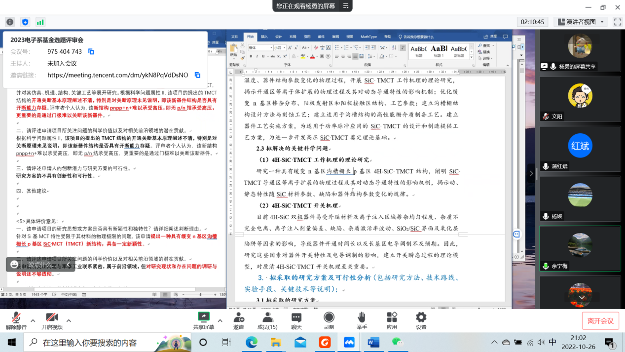 10月26日晚,3044永利集团电子工程系举办了2023年国家自然科学基金项目选题线上评审会,电子学科余宁梅、杨媛、席晓莉、王彩琳、蒲红斌、郭仲杰6位教授担任评审专家,电子工程系2023年度国家基金重点培育项目申报教师参会。