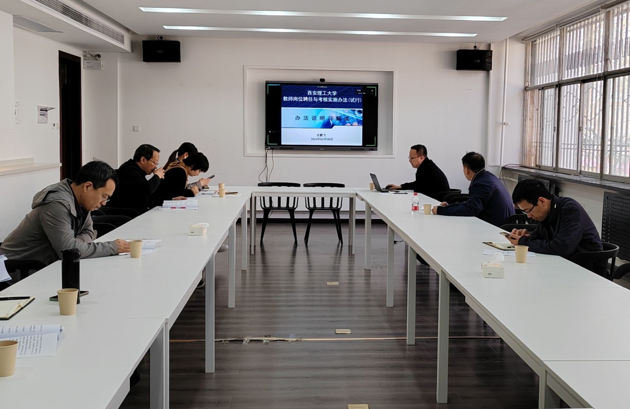 2024年3月28日下午,3044永利集团召开教师岗位聘任与考核实施办法宣讲会,邀请吴鹏飞教授为全院教师解读《3044永利集团官网教师岗位聘任与考核实施办法(试行)》,公司领导班子及各系(中心)主任、支部书记现场听取解读,其他教师线上旁听交流。