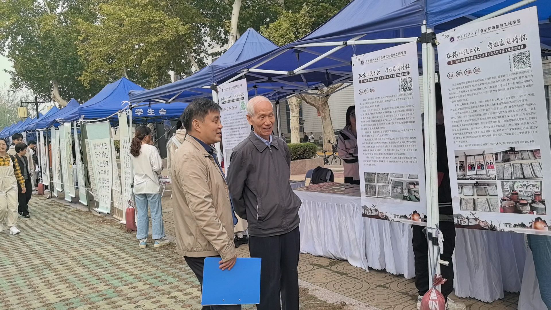 老教师们首先参观了木作文化、鱼化泥叫叫、传统糖画、绣样剪纸、传统蛋雕、秦腔脸谱、长安面塑技巧、秦腔脸谱画、书画作品等形式多样的非遗展览。他们和非遗传承人亲切交流,深入了解了非遗文化的起源、特色以及传承现状。随后,在展览活动现场观看了古装汉服朗诵和古筝、竹笛等传统民乐演奏。最后,在互动区,老教师亲身体验了传统漆扇制作。老教师们纷纷评价通过参与今天活动,真正身临其境和历史对话,感受到非遗文化饱经沧桑后的厚重辉煌,在悠扬的音乐和声情并茂的诵读声中感受传统文化的独特魅力。