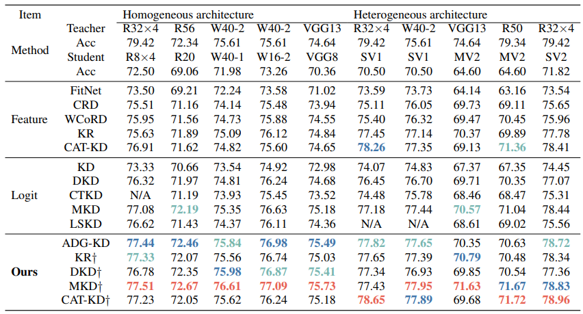 为解决上述问题,本论文提出了一种自适应双重引导知识蒸馏 (Adaptive Dual Guidance Knowledge Distillation, ADG-KD)。ADG-KD在保留预训练教师的基础上,额外引入了一个与预训练教师同构的初始化教师模型。该初始化教师模型在预训练教师模型与员工模型的双向监督下进行优化,从而构建出教师网络的双向优化路线。在蒸馏过程中,员工模型在预训练教师模型及其双向优化路线的自适应双重引导下进行优化,以学习到准确的知识表征以及与其表征能力相兼容的知识序列。广泛的实验表明,本论文提出的方法能够有效解决容量沟壑问题,并促使员工模型取得与教师模型相近的性能。