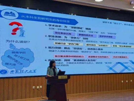 余宁梅教授以“从‘学习者’到‘研究者’的跨越”为题进行了开学第一课,为同学们传授了本科生到研究生的身份转变后,从“为什么学”到“怎么学”的“学习宝典”,寄予同学们“练本事、下功夫、守底线”,做有能力、有担当、有格局的科技者。