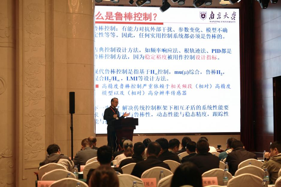 27日上午,在学术报告环节,IEEE/IFAC Fellow、南京大学周克敏教授分享了“高性能鲁棒控制”的研究进展,阐述了一个解决高精度跟踪和强抗扰高性能鲁棒控制问题的框架和可能的方向。
