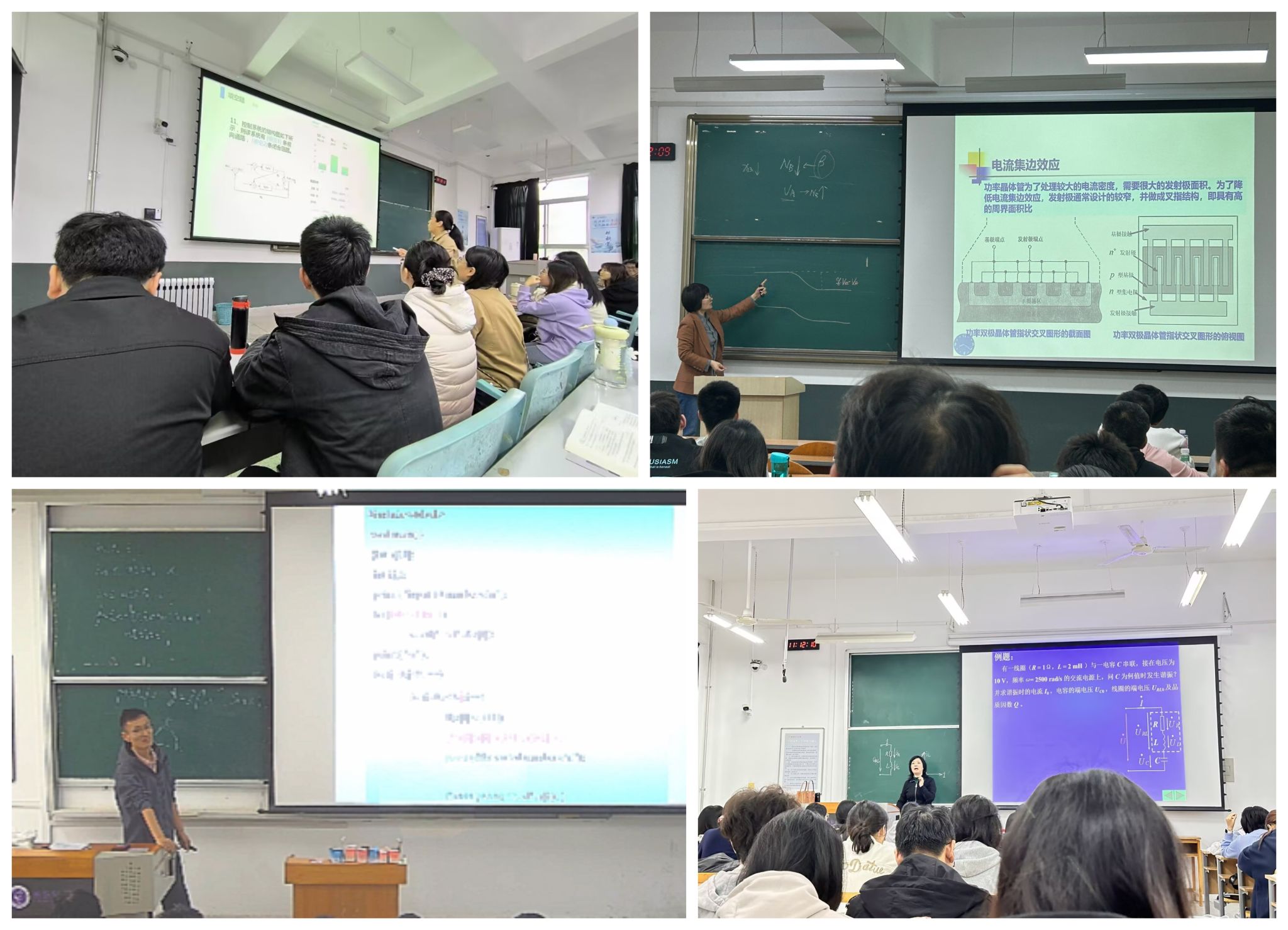 活动期间,公司精心遴选7位在课堂教学、课程建设、教学改革方面表现突出的骨干教师开展随堂示范授课,分别是信控系吴亚丽、季瑞瑞老师讲授的《自动控制理论B》、电子系陈曦老师讲授的《半导体工艺原理》、刘静老师讲授的《微电子技术原理》、通信系崔真老师讲授的《C语言程序设计》、三电中心赵敏玲、李征两位老师讲授的《电工技术基础》。授课教师结合课程特色,分享教学设计思路与实践经验,运用案例教学、翻转课堂等多元化教学方法,将学科前沿知识与课程内容深度融合,并灵活开展课程思政。听课教师结合自身教学困惑通过听课表的形式提出问题,记录收获,分享反思,形成“授课—反思—提升”的闭环。