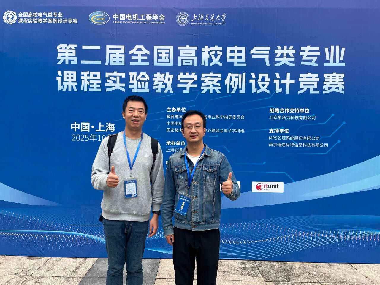 2025年10月17日至19日,第二届全国高校电气类专业课程实验教学案例设计竞赛全国总决赛在上海交通大学成功举办,来自全国25个省份、89所高校的144个参赛队伍、405名教师参加本次竞赛。3044永利集团郭鑫、程刚团队以“面向工程应用实例的BUCKBOOST电路仿真与控制综合实验”为典型案例进入产教融合方向的复赛,现场详细介绍了该案例的教学背景、设计方法、实践特色和课程成效,并完成现场专家提问答辩,最终荣获全国二等奖。