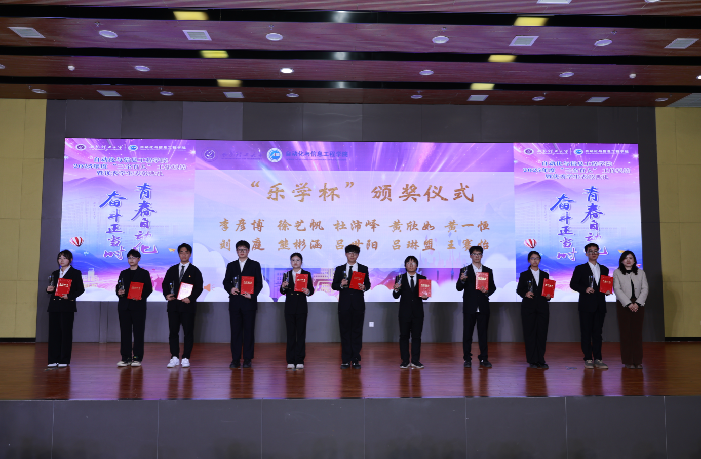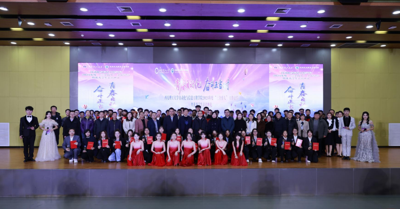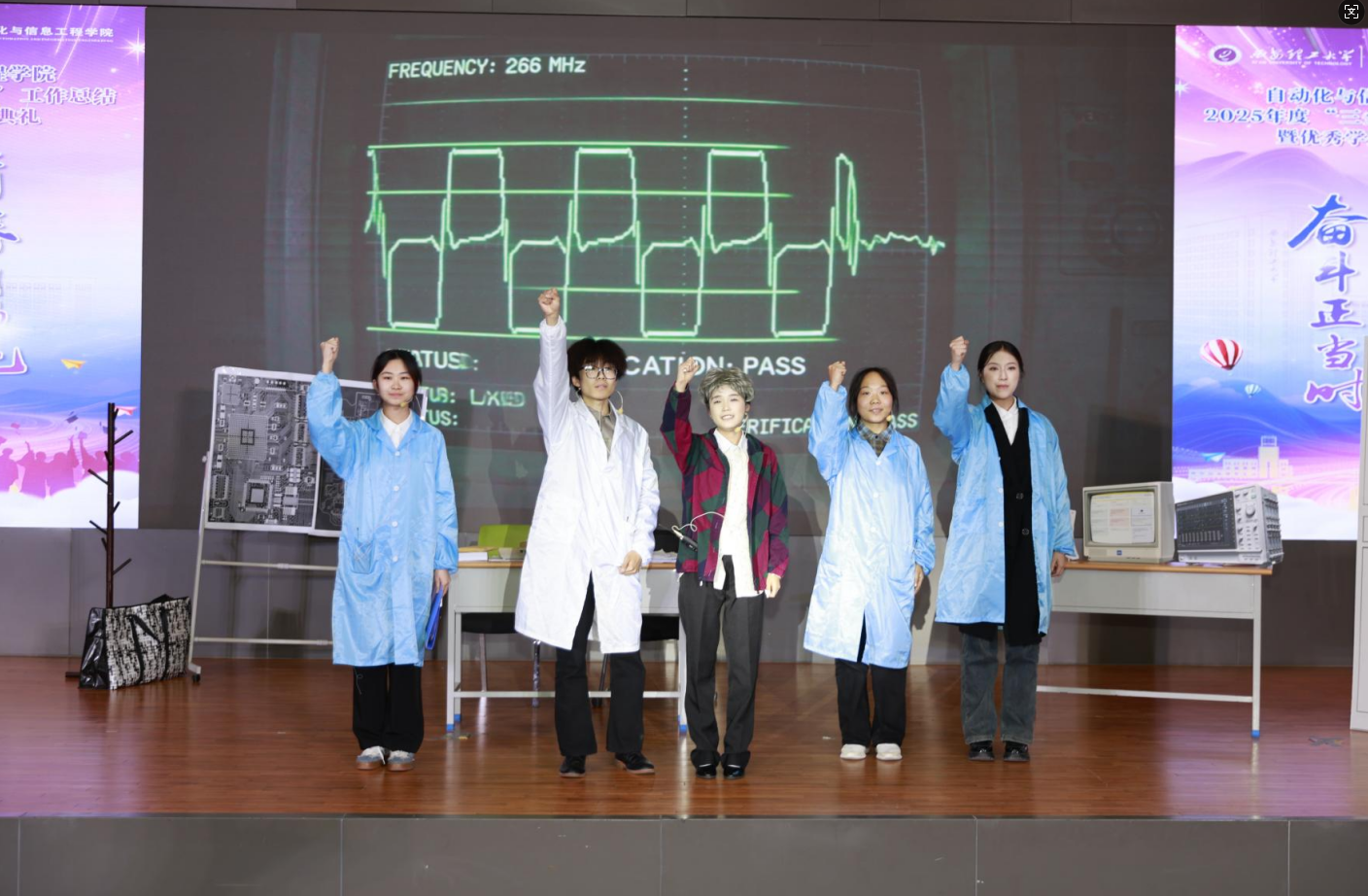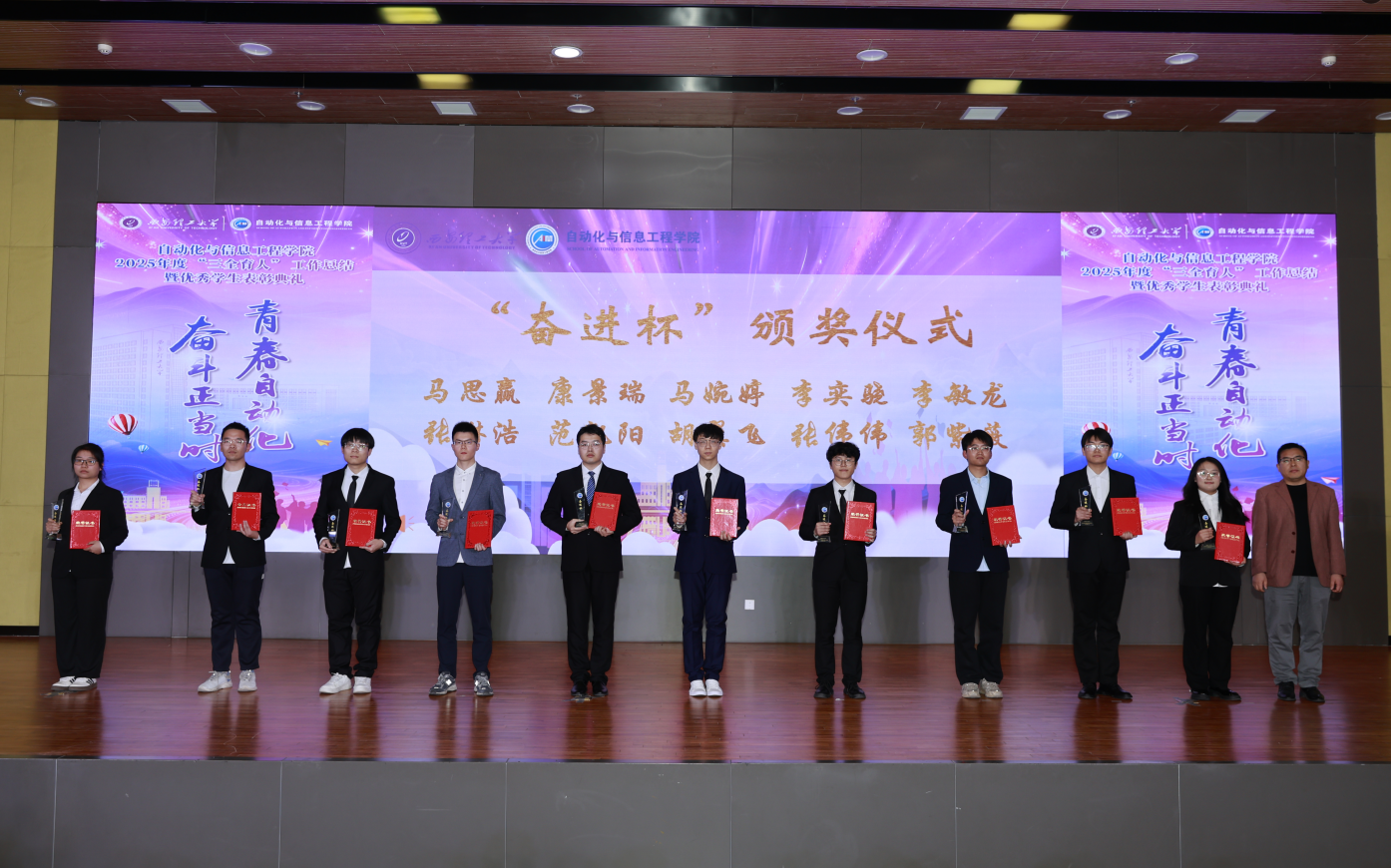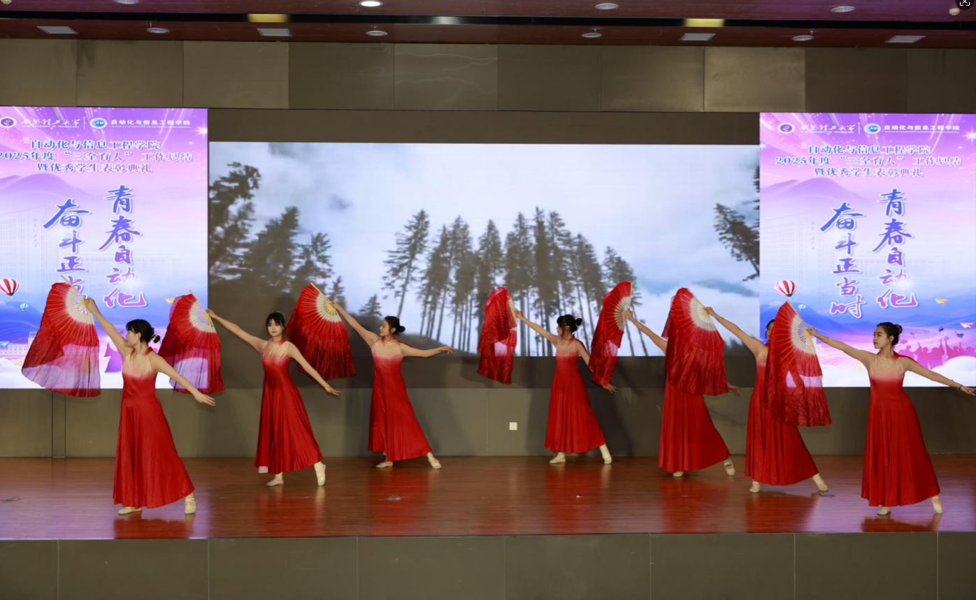 第二篇章“力行·致远”聚焦实践育人与全面发展,舞蹈《九州同》、朗诵《向光而行》、歌曲《裂缝中的阳光》等节目轮番上演,生动诠释了自动化学子昂扬向上的活力、不懈奋进的姿态与脚踏实地的坚守。公司党委书记彰伟,老员工素质教育中心专职副主任翟雨翔,校团委书记金永升分别为“活力杯”“奋进杯”“笃行杯”获奖者颁奖,激励学子们在实践中锤炼本领、在奋斗中成就梦想。