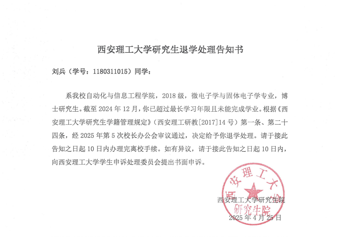 刘兵退学告知书公告